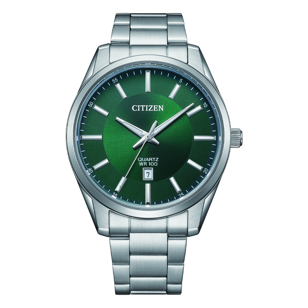 Elevate your ensemble with this exquisite timepiece, where timeless elegance meets unparalleled durability. This watch seamlessly combines functionality with style. It features a vibrant green sunburst dial that captivates with every glance and a discreet date display positioned at 6 o'clock. Crafted to endure, it boasts a water resistance of 100 meters, ensuring reliability for any adventure.