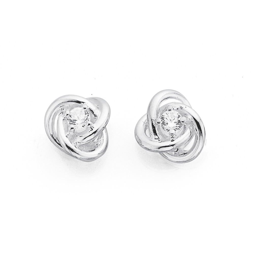 Sterling Silver CZ Knot Stud Earrings
