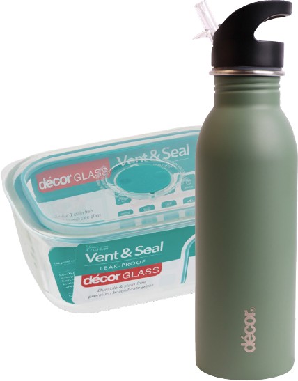 Decor Glass Vent & Seal Container 1L or Decor Snap & Seal Bottle 600ml