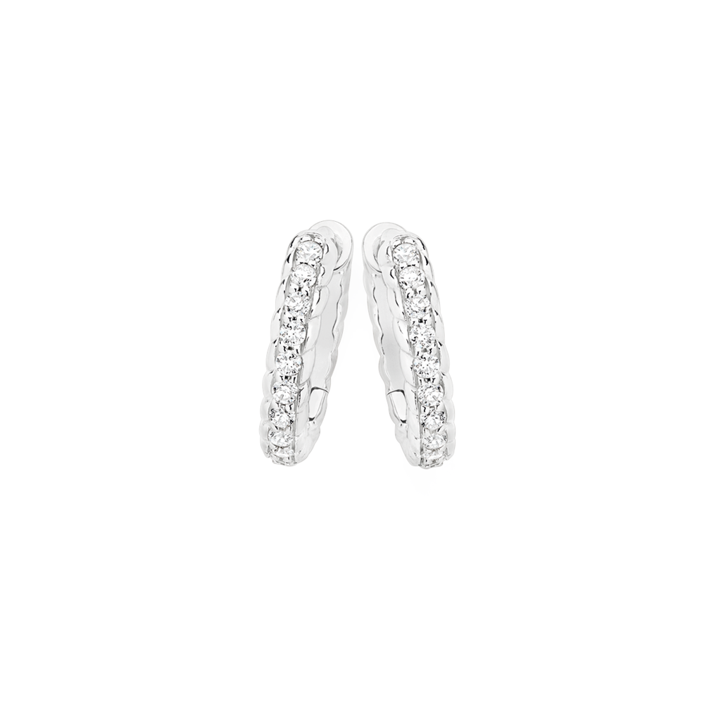 Sterling Silver CZ Twist 15mm Huggie Earrings 1607276