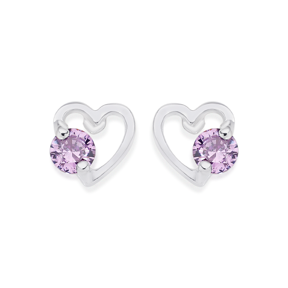 Sterling Silver Violet Cubic Zirconia Open Heart Stud Earrings. Approximate Dimension - 5mm Width x 5mm length.