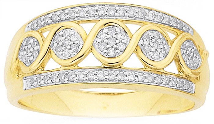 9ct Gold Diamond Swirl Dress Ring Total Diamond Weight = .20ct8611011