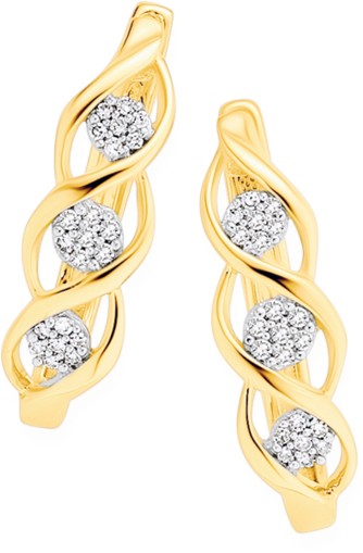 9ct Gold Diamond Round Brilliant Cut Cluster Swirl Huggie Earrings Total Diamond Weight=.12ct. External Size = Approx. 20mm x 5mm.