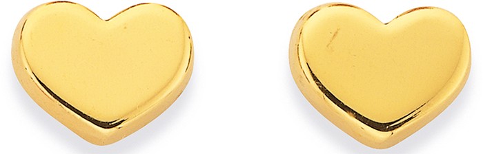 Italian Made 9ct Gold Flat Heart Stud Earrings - Dimensions 5mmx6mm 2469364