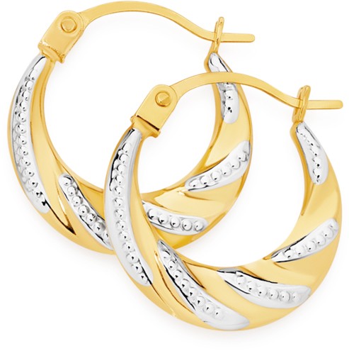 9ct Gold Two Tone 9mm Beaded Twist Creole Earrings. 2431038