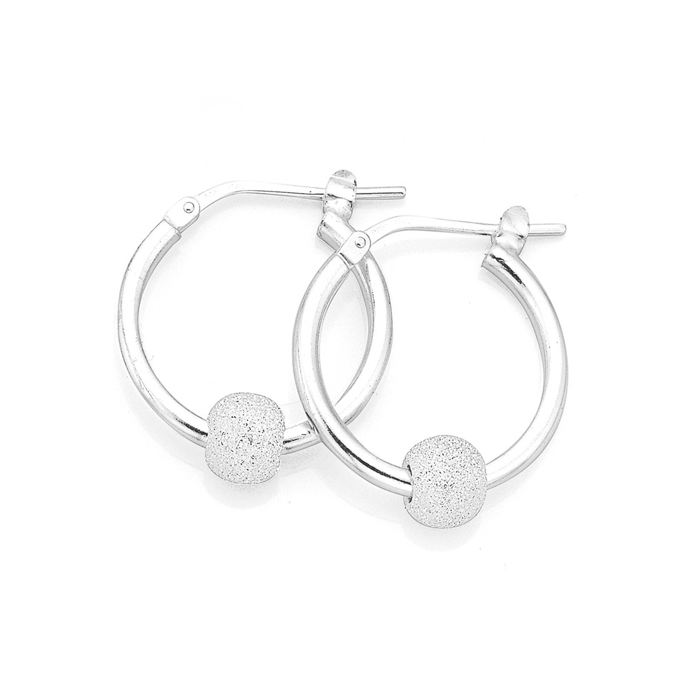 Sterling Silver Stardust Ball 15mm Hoop Earrings.1311029