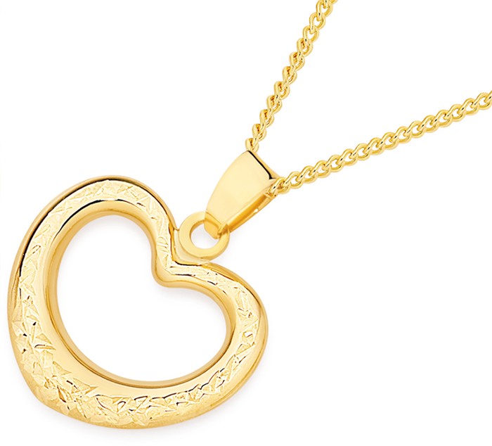 9ct 15mm Diamond-Cut Open Heart Pendant
