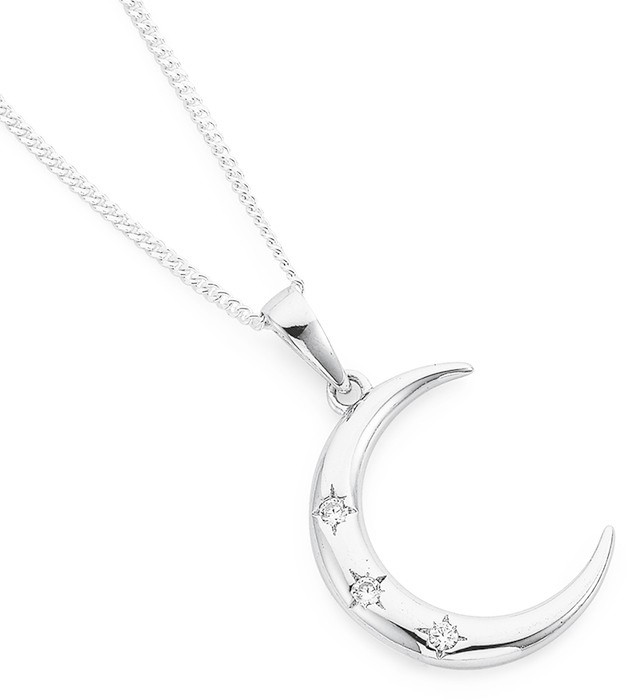 Sterling Silver Cubic Zirconia Crescent Moon Pendant.1701478