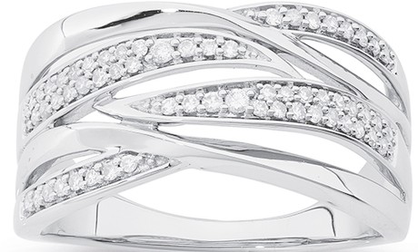 9ct White Gold Diamond Multi Crossover Ring