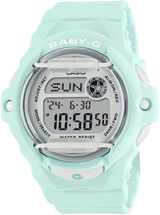 The Casio BG169U-3D is a stylish and functional digital watch designed specifically for active women. With its vibrant green resin case and band, it offers a sporty and energetic look that stands out. The watch features a digital display with a LED backlight, ensuring clear visibility in any lighting conditions. It offers a range of practical features including a stopwatch, countdown timer, and multiple alarms, catering to diverse activities and schedules. With water resistance up to 200 meters, it is suitable for swimming and water-related activities. The BG169U-3D effortlessly combines fashion and functionality, making it a reliable and fashionable timepiece for women on the go.
