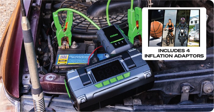 Digital screen, 18W quick charge feature & inbuilt 150PSI compressor with 4 inflation adaptors. Inbuilt safety features.