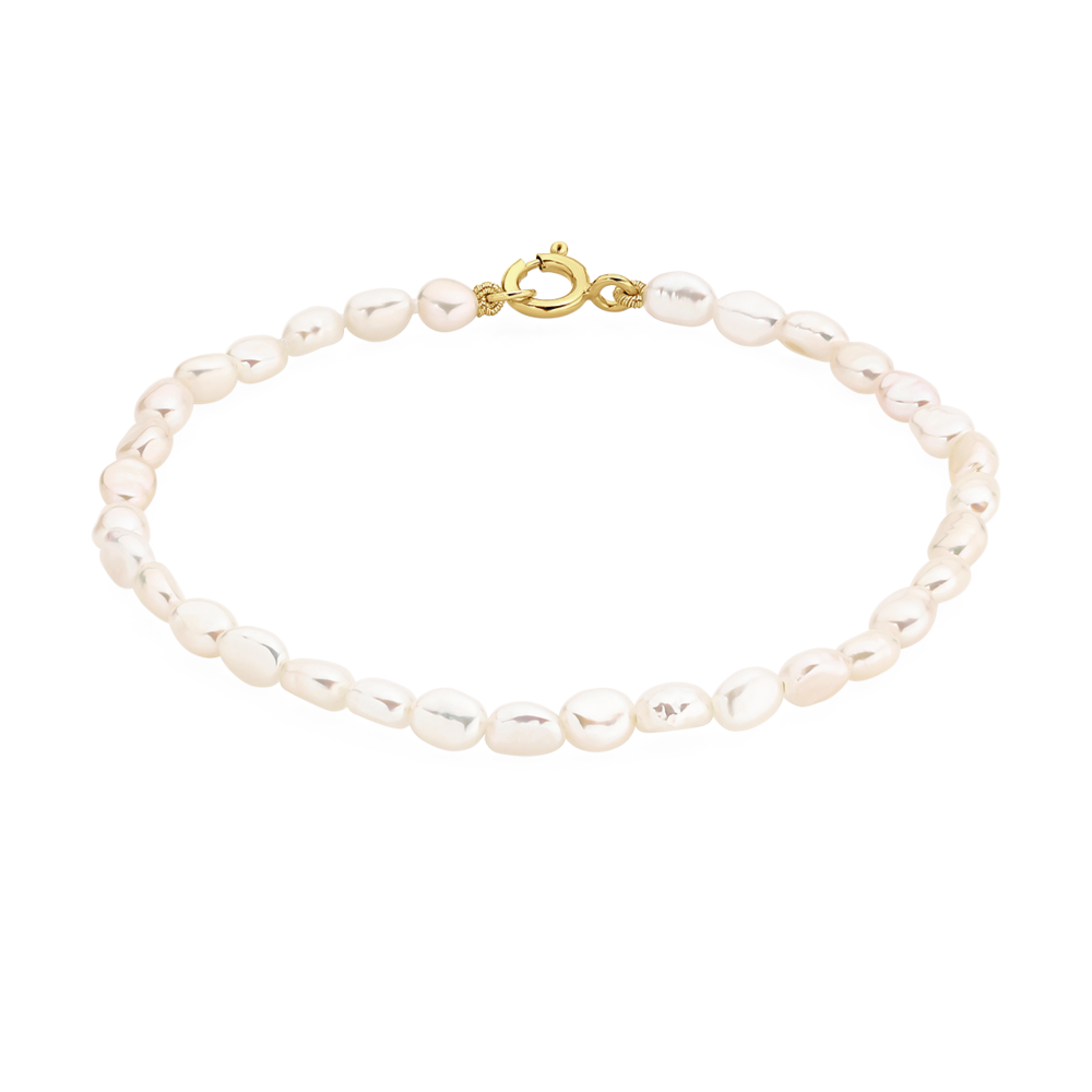 9ct Gold 18.5cm Keshi Cultured Freshwater Rice Shape Pearl Bracelet, Pearl Size = 5mm
