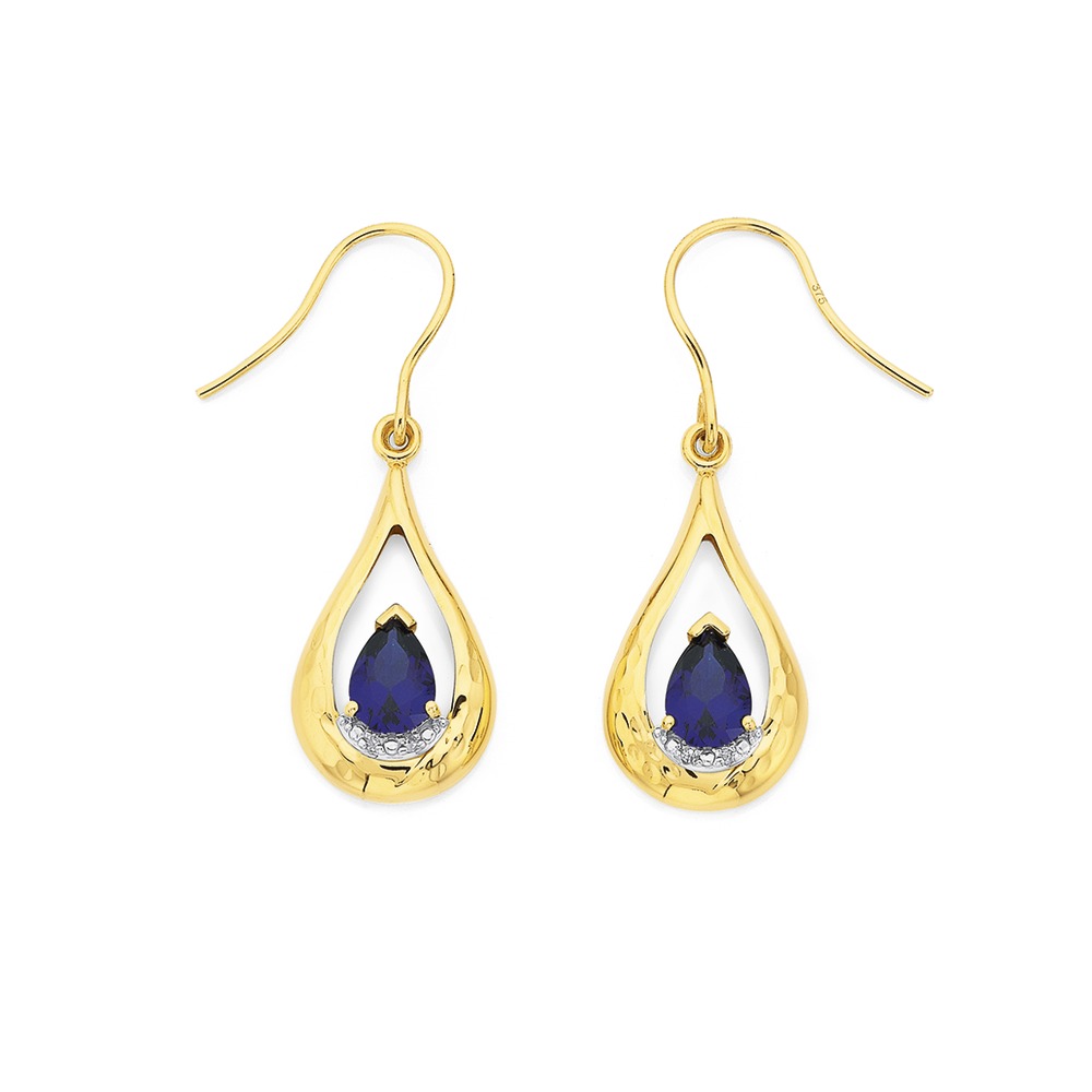 9ct Created Sapphire and Diamond Drop Earrings