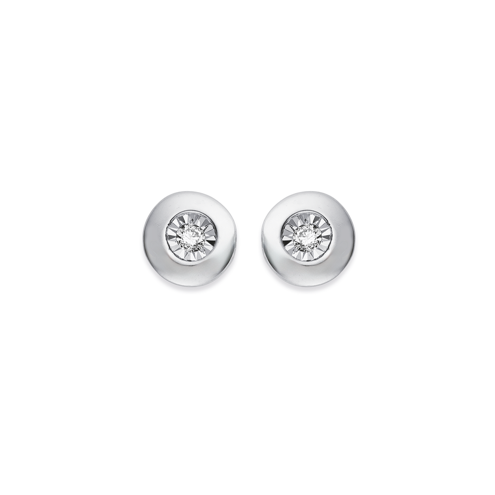 9ct White Gold Diamond Bezel Stud Earrings
