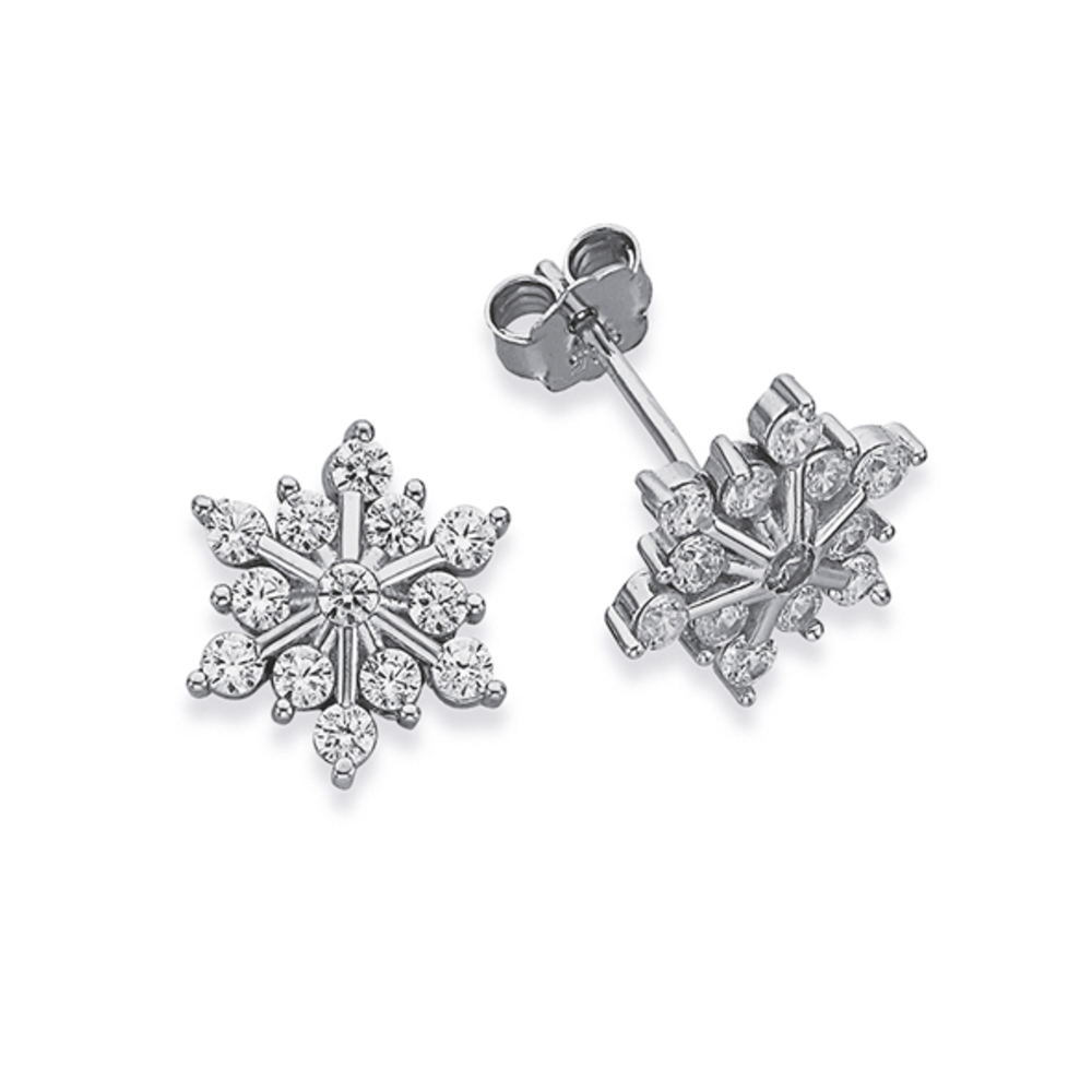 Sterling Silver Cubic Zirconia Snowflake Earrings