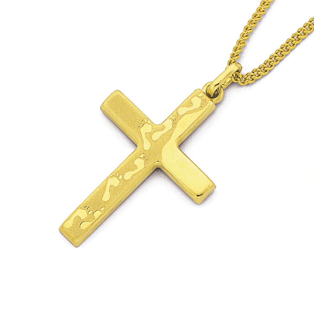9ct 24mm Footprints Cross Pendant with Verse on Back