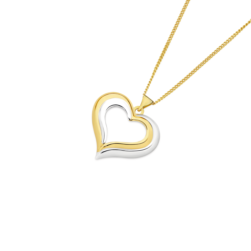 9ct Gold Two Tone Open Heart Pendant. Approximate Dimensions - 20mm Width x 23mm Height including bale.