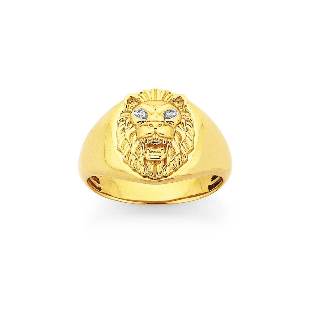 9ct Gold Diamond Set Lion Head Gents Ring8409104