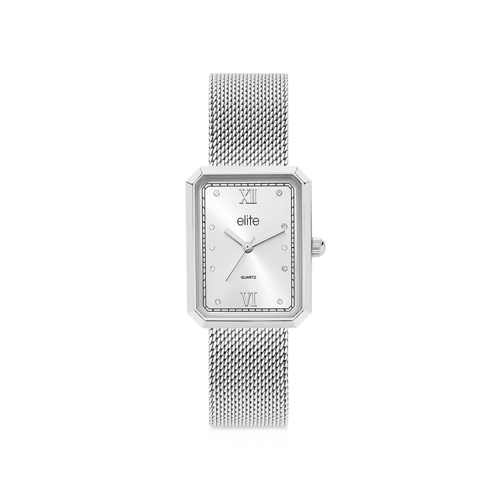 Where sleek design meets modern minimalism the Nova Mesh watch is a timeless statement of refined style. Featuring a clean silver-tone sunray dial housed in a bold rectangular case, this piece delivers understated sophistication with a contemporary edge. The mesh strap wraps the wrist in comfort and elegance, while minimalist dot hour markers and Roman numerals at 12 and 6 add just the right touch of classic flair. Powered by precise quartz movement, the Nova Mesh ensures you stay punctual in style. Perfect for both daily wear and special occasions, this versatile timepiece is a must-have for the modern woman who values elegance and edge in equal measure.