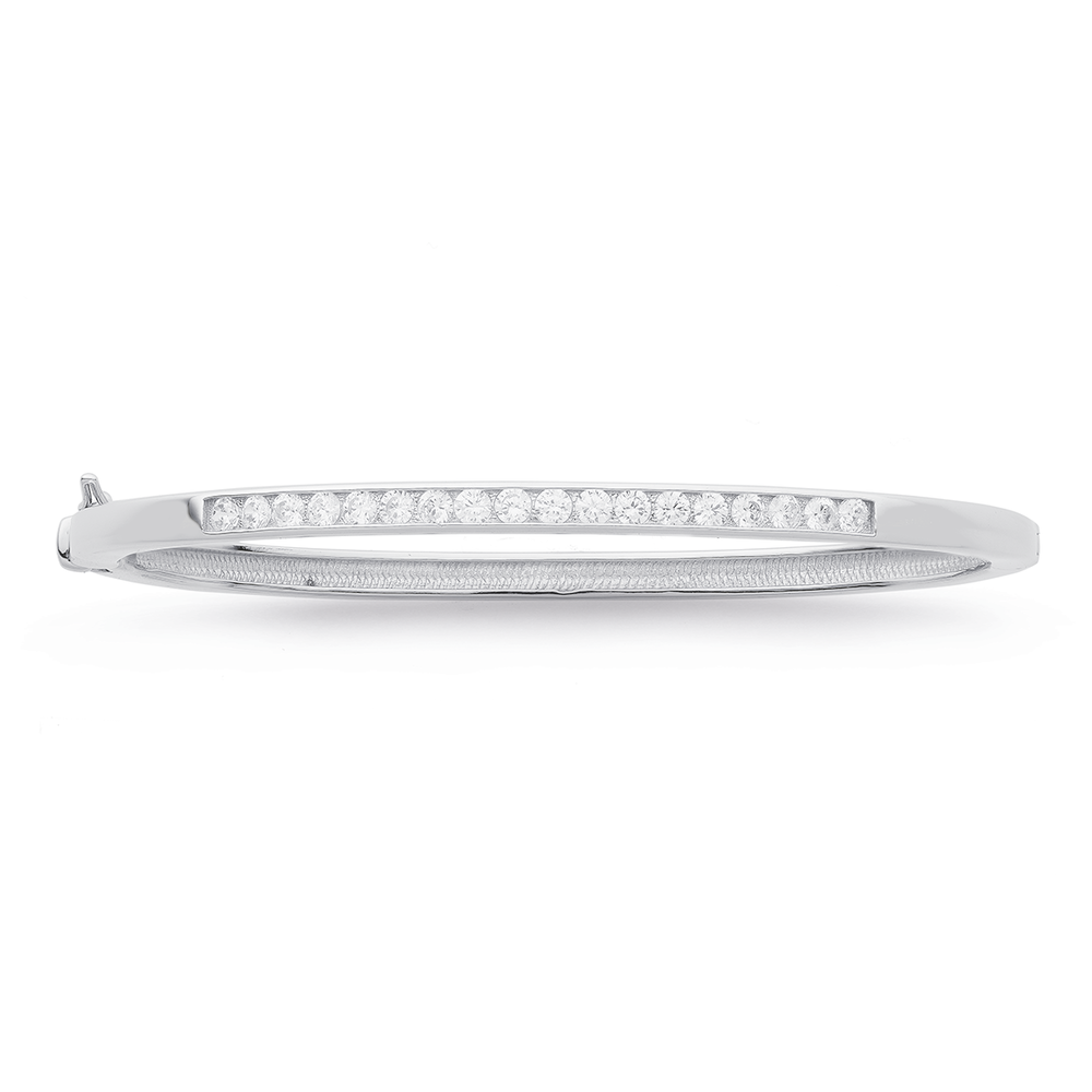 Sterling Silver Round Cubic Zirconia Channel Set Hinge Bangle1919014