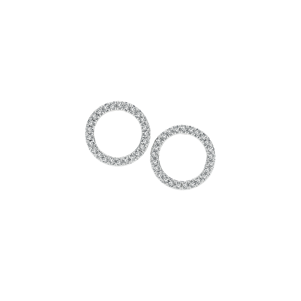 Exquisites Collection: 9ct Gold Diamond Pave Set Circle Stud Earrings Total Diamond Weight = .15ct. Size = Approximately 9mm in Diameter.
