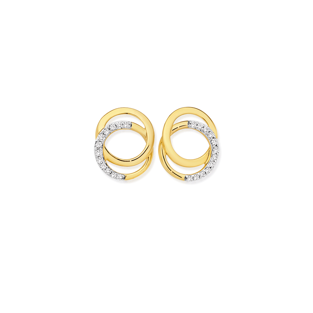 9ct Gold Diamond Interlock Circles of Love Stud Earrings. Size = Aprox. 11mm x 8mm.
