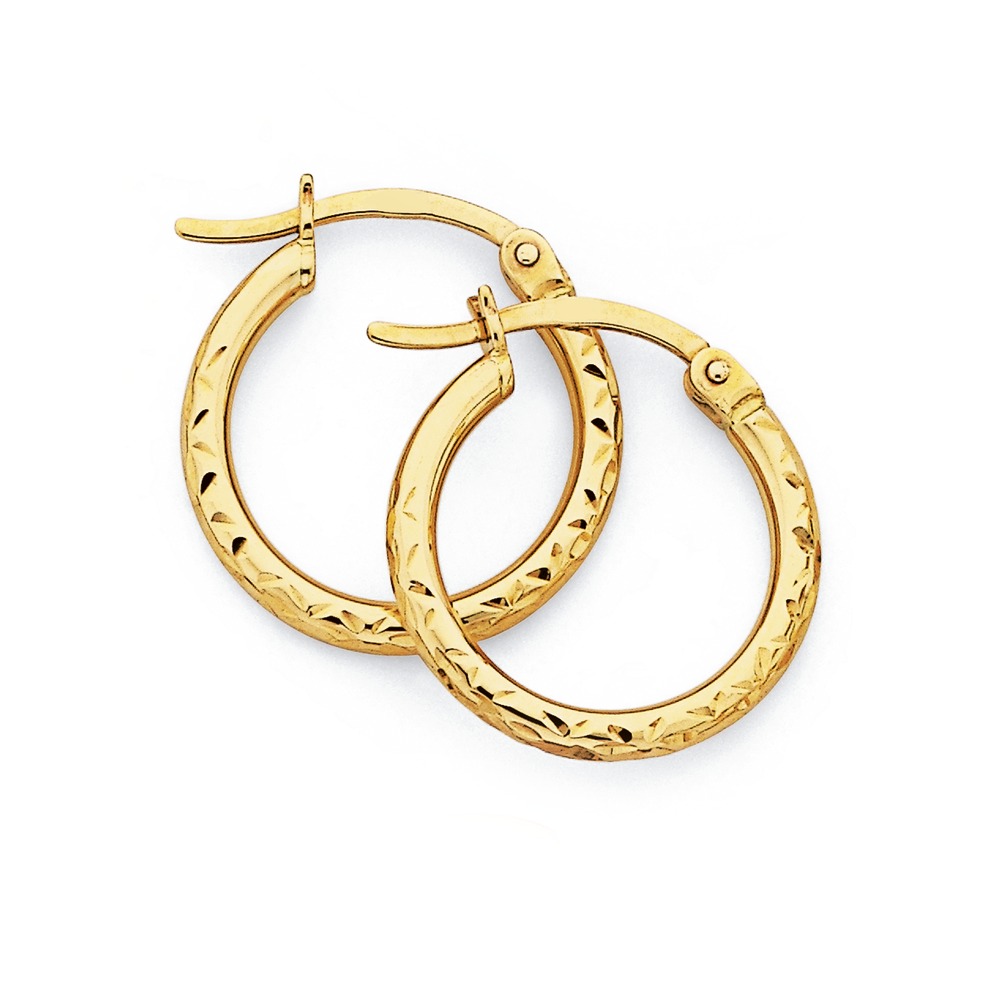9ct Gold Small Diamond Cut Hoop Earrings - 13mm Internal Diameter.2449083