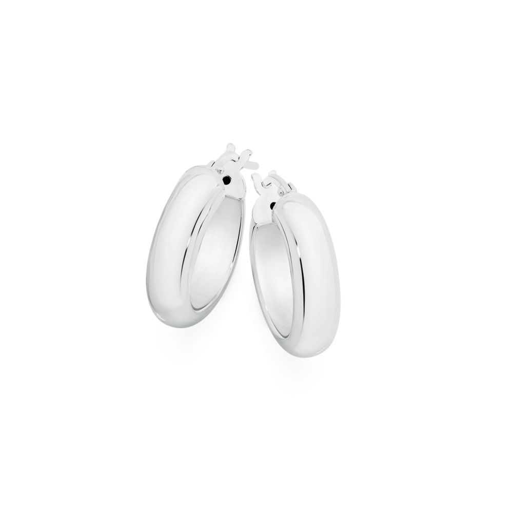 This adorable pair of Italian made classic style hoop earrings is crafted in sterling silver. Perfect to wear with any of your favourtie outfits. Size: diameter 17mm, width 5mm.