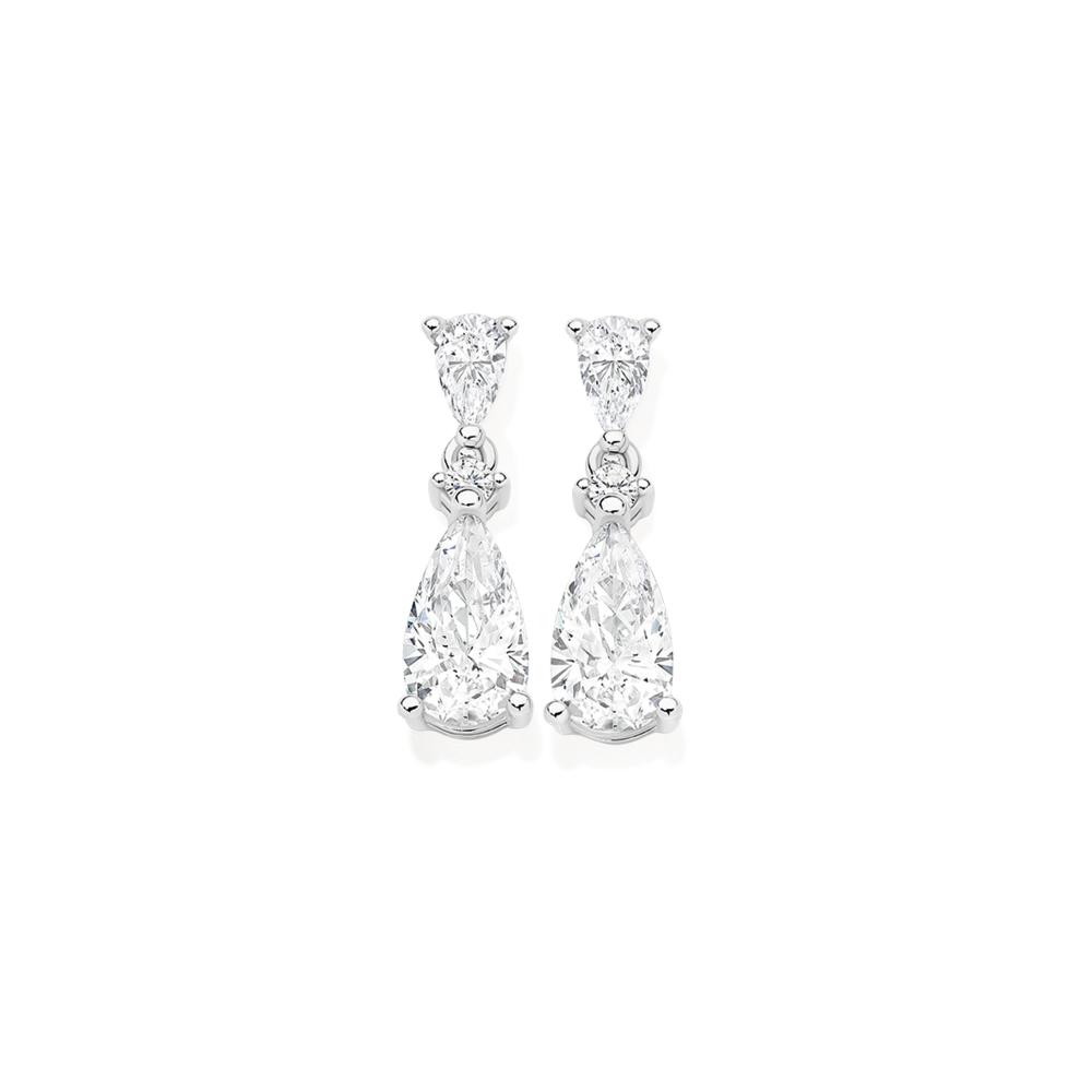 Sterling Silver Elegant Pear Cubic Zirconia Drop Studs