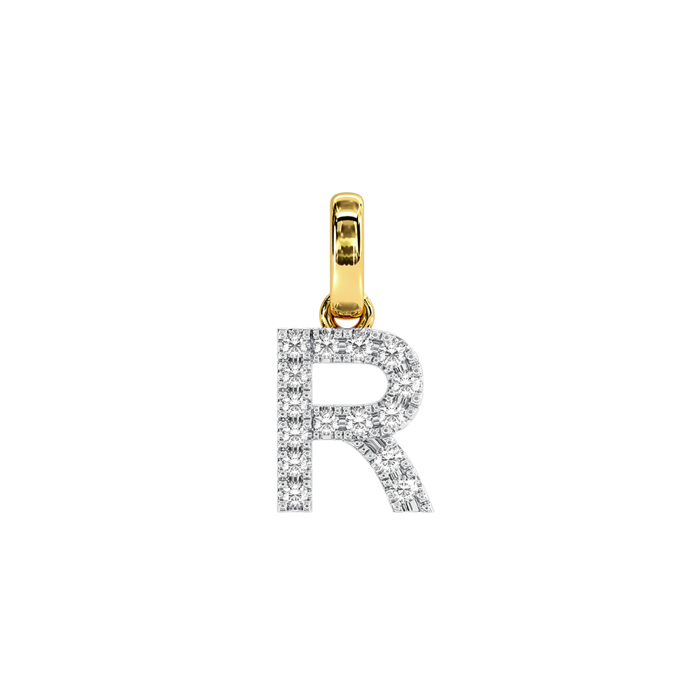 9ct Gold Diamond Initial 'R' Block Pendant. Size= Approximately 13mm x 6mm Including Bale.