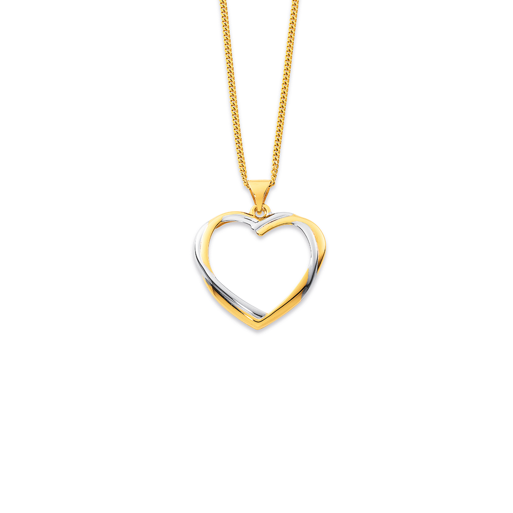 9ct Gold Two Tone Crossover Open Heart Pendant 2527035