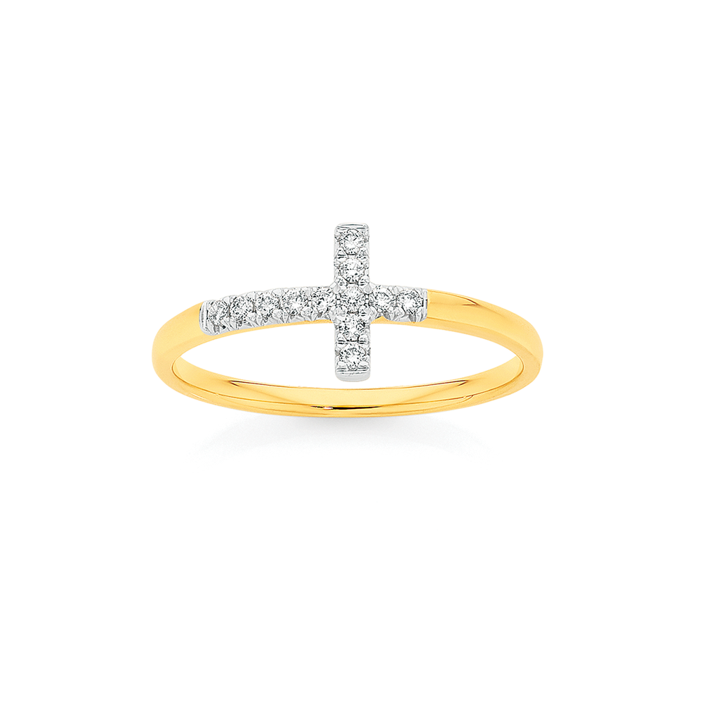 Exquisites Collection: 9ct Gold Diamond Pave Set Cross Ring Total Diamond Weight = .10ct