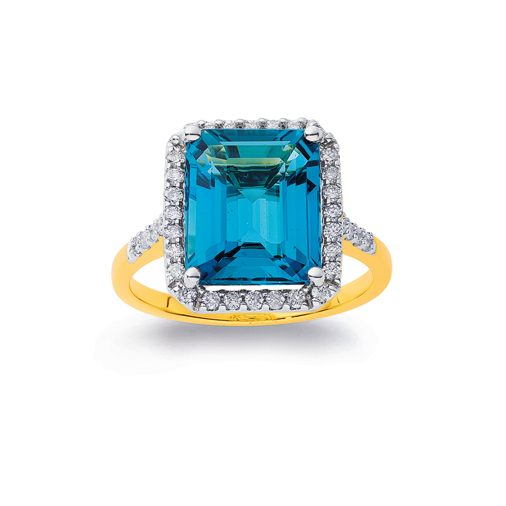 9ct London Blue Topaz and Diamond Asscher Shaped Ring