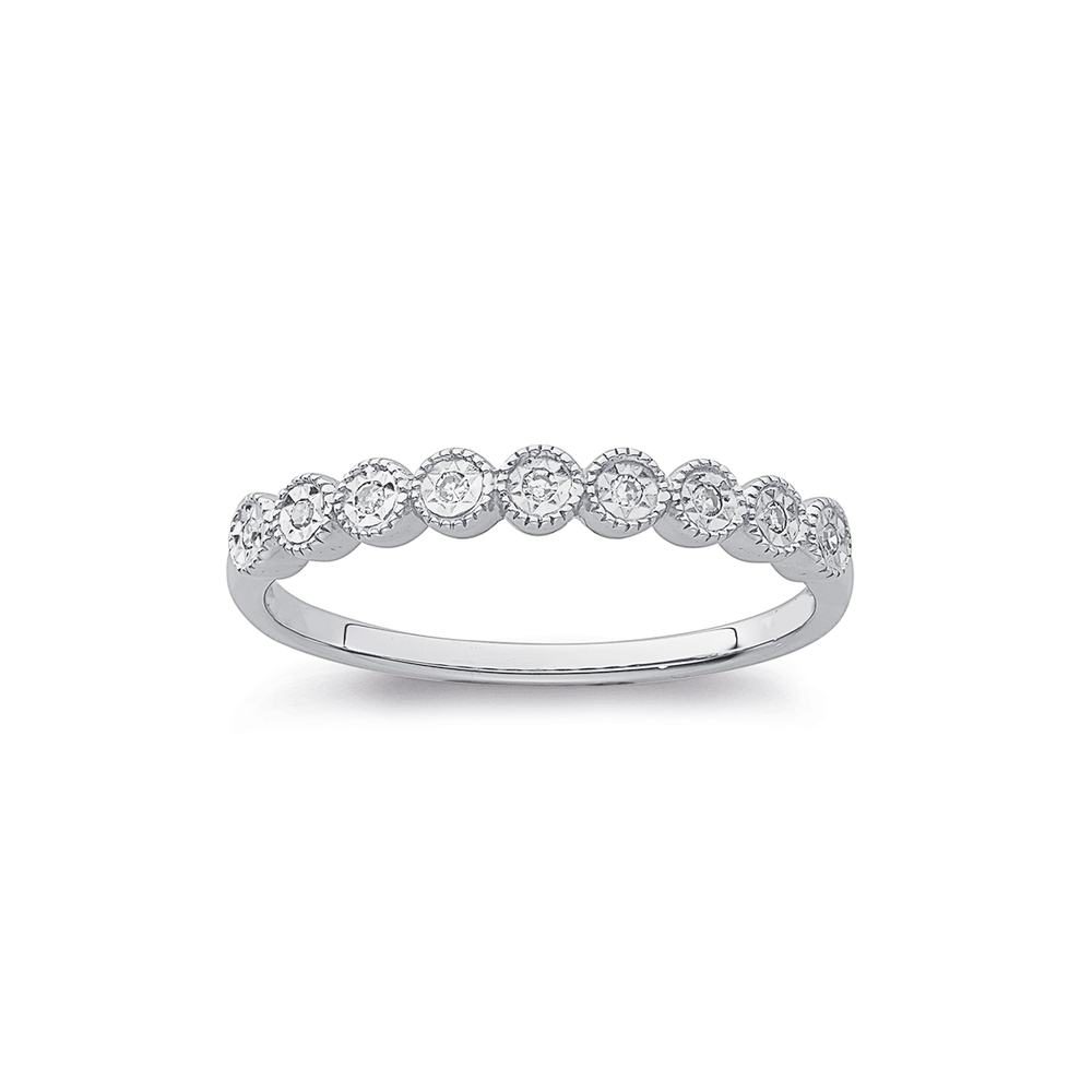 9ct White Gold Diamond Miracle Set Milgrain Bubble Band 8615119