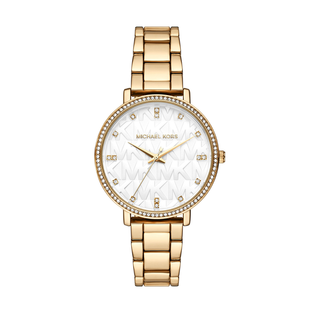 An instant classic, our 38mm Pyper is the perfect new addition to your wardrobe. This gold-tone alloy watch features a white stamped logo dial with glitz indexes and a pav? topring for just the right touch of sparkle.