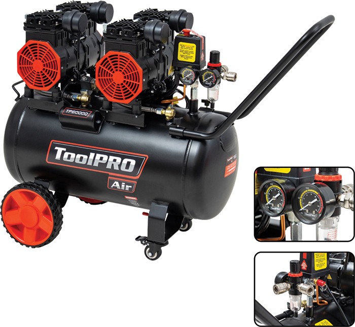 Powerful yet quiet 2.75HP electric motor & direct drive reciprocating pump for reliable performance. Black powder coated steel 50 litre tank resists corrosion & abrasion damage. 200 litres per minute (LPM) free air delivery suitable for most air tools including spray guns.