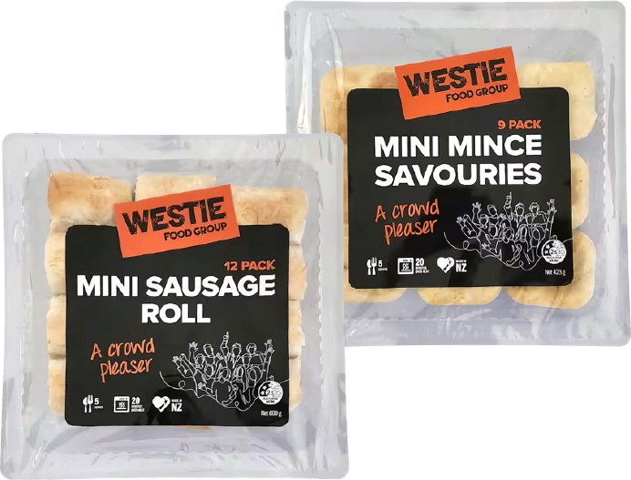 Westie Pies 4 Pack, Savouries Mixed Trio 10 Pack, Mini Mince Savouries 9 Pack or Mini Sausage Rolls 12 Pack*