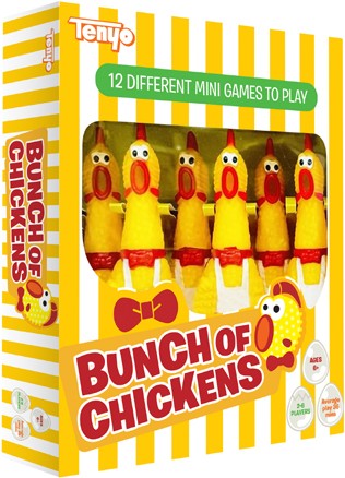 Packed with laughter and friendly competition, Bunch of Chickens includes six noisy chickens, crazy challenges, and 12 games for the whole family to enjoy.