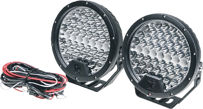 Kit contains: 2x driving lights, wiring harness with switch and relay.