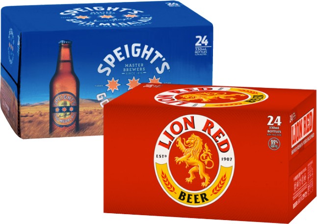 Lion Red, Speight’s Gold Medal Ale or Waikato Draught Bottles 24 Pack