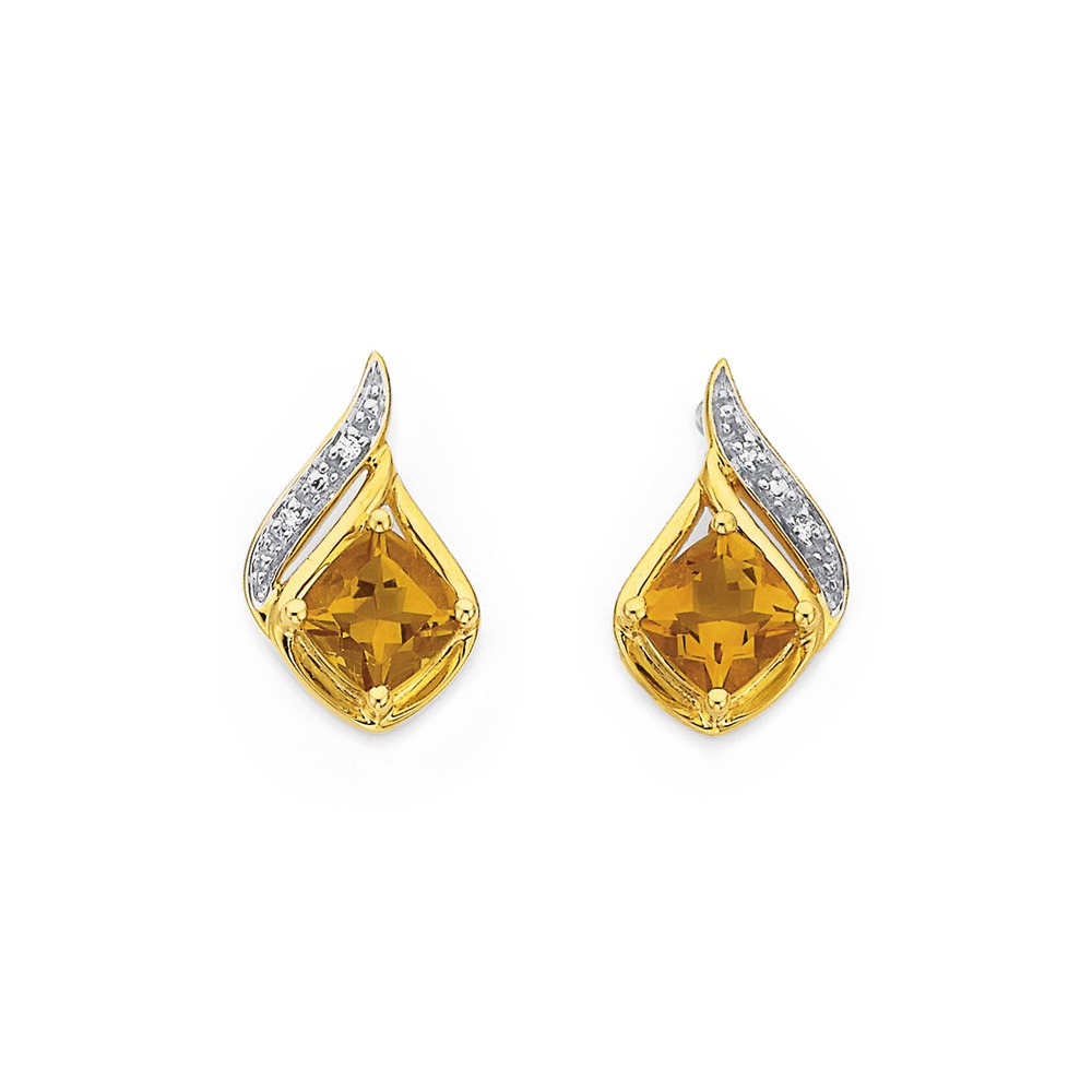 9ct Cushion Citrine & Diamond Swirl Earrings.7619156