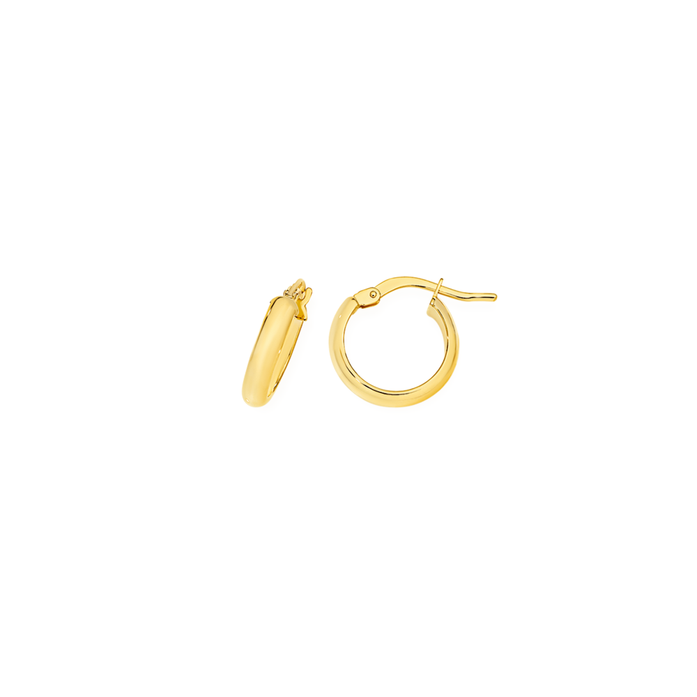 Italian Made 9ct Gold Polished Finish Half Round Profile Hoop Earrings - Approximate Dimensions 3mm Width x 10mm Inner Diameter.