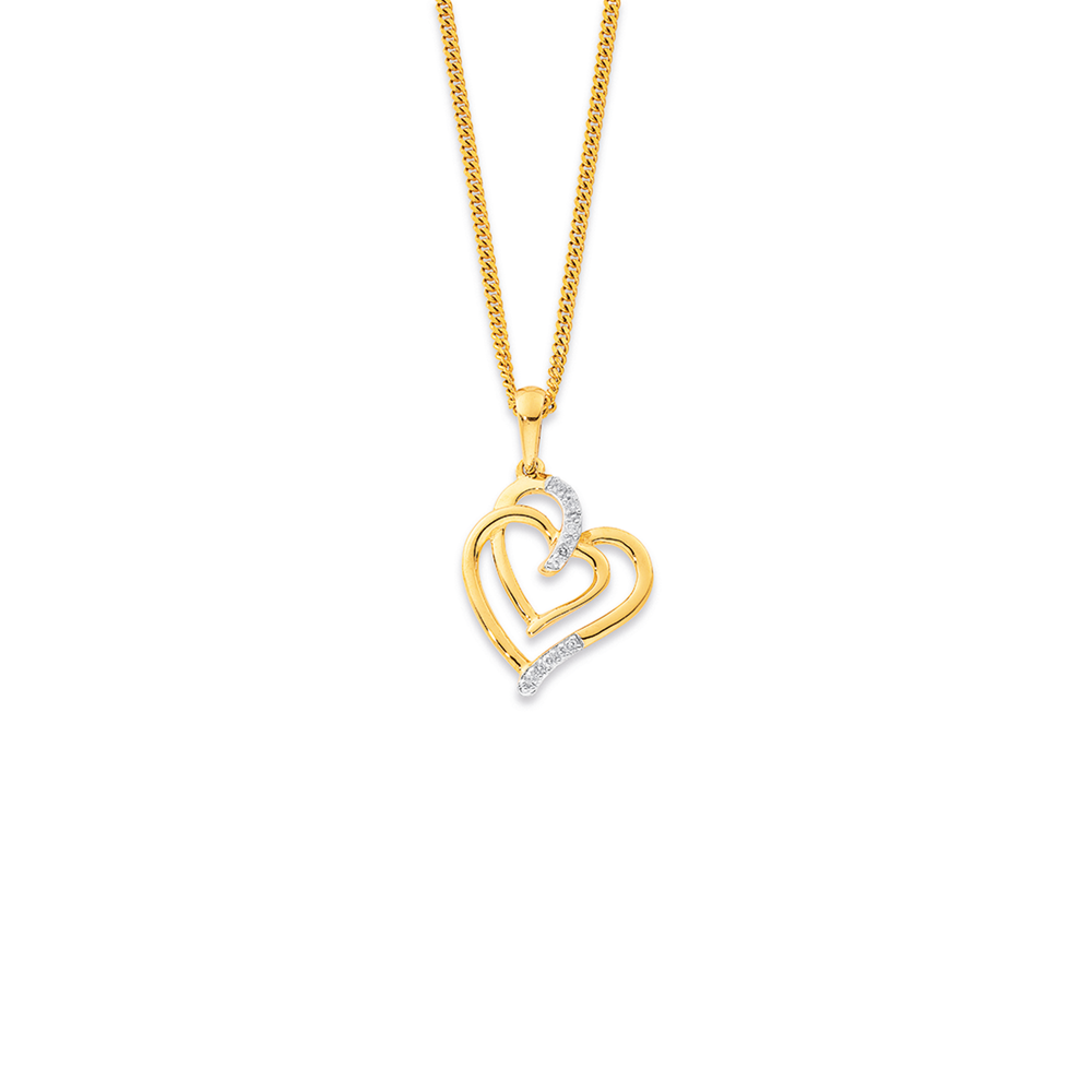 9ct Gold Diamond Double Linked Heart Pendant. Size = Approx. 22mm x14mm Including Bale.