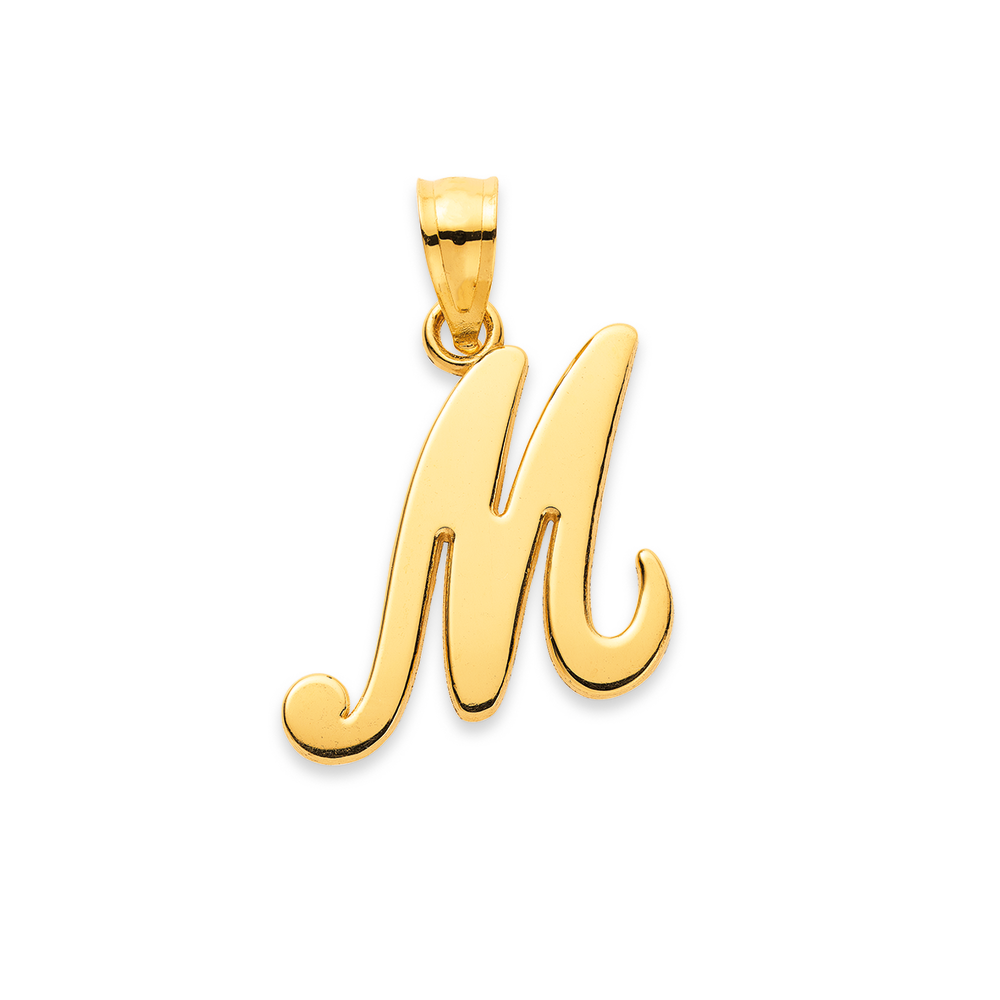 9ct Gold Uppercase Initial "M" Pendant in Script Font Style. Approximate Dimensions - 13x21mm Including bale.