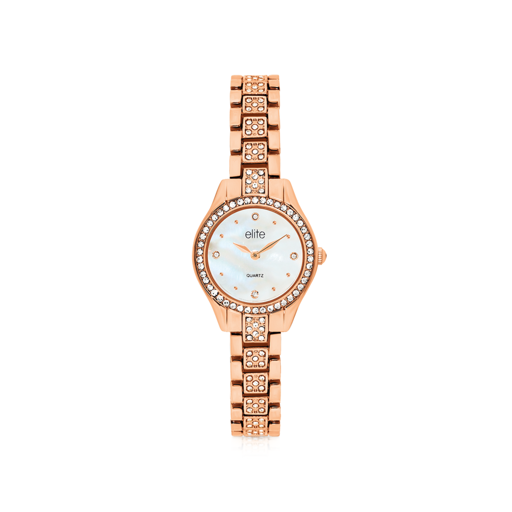 Elite ladies, rose tone, mother of pearl dial, crystal set watch 5089111