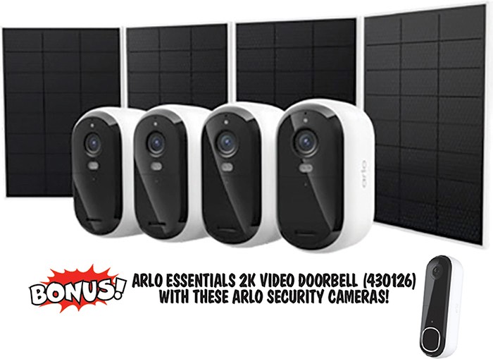 BONUS! Arlo Essentials 2K Video Doorbell (430126) with above Arlo Security Camera!
