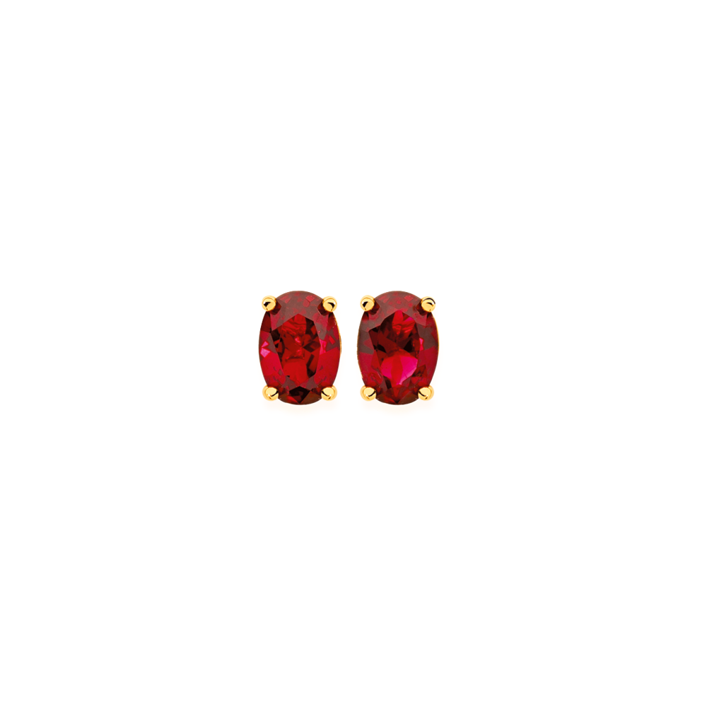 9ct Gold Created Ruby Oval Cut Claw Set Stud Earrings Created Ruby = 7 x 5mm.