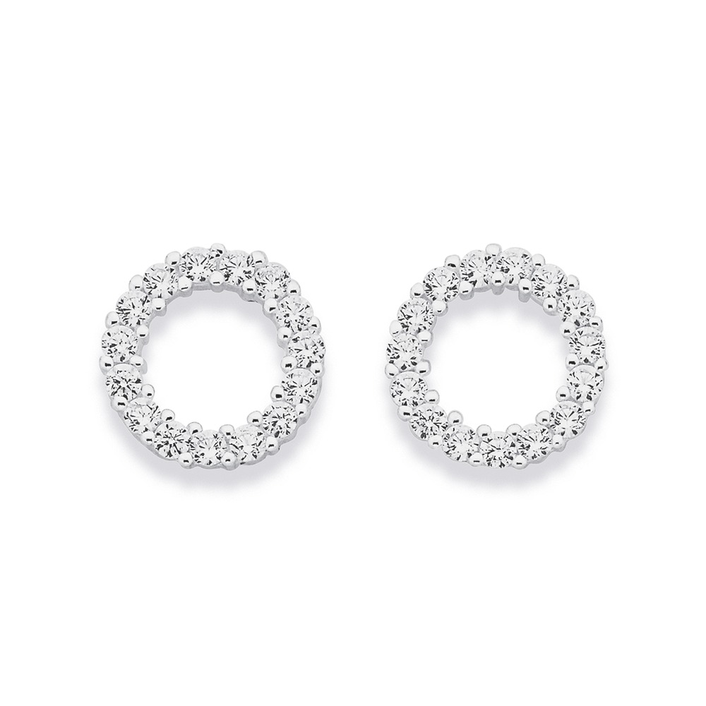 Sterling silver & cubic zirconia open circle earrings 10mm.