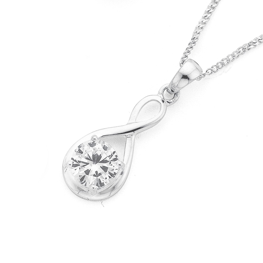 Elegant and feminine, this precious infinity pendant will add sparkle to any outfit. Crafted in sterling silver, this shining necklace boasts a round brilliant cut cubic zirconia - Size: H 23mm x W 19mm (Including Bale).