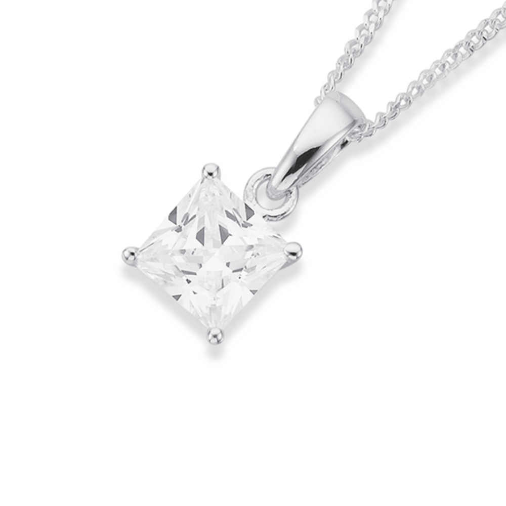 Sterling Silver Square Cubic Zirconia Pendant - "Add a sparkle to your day"